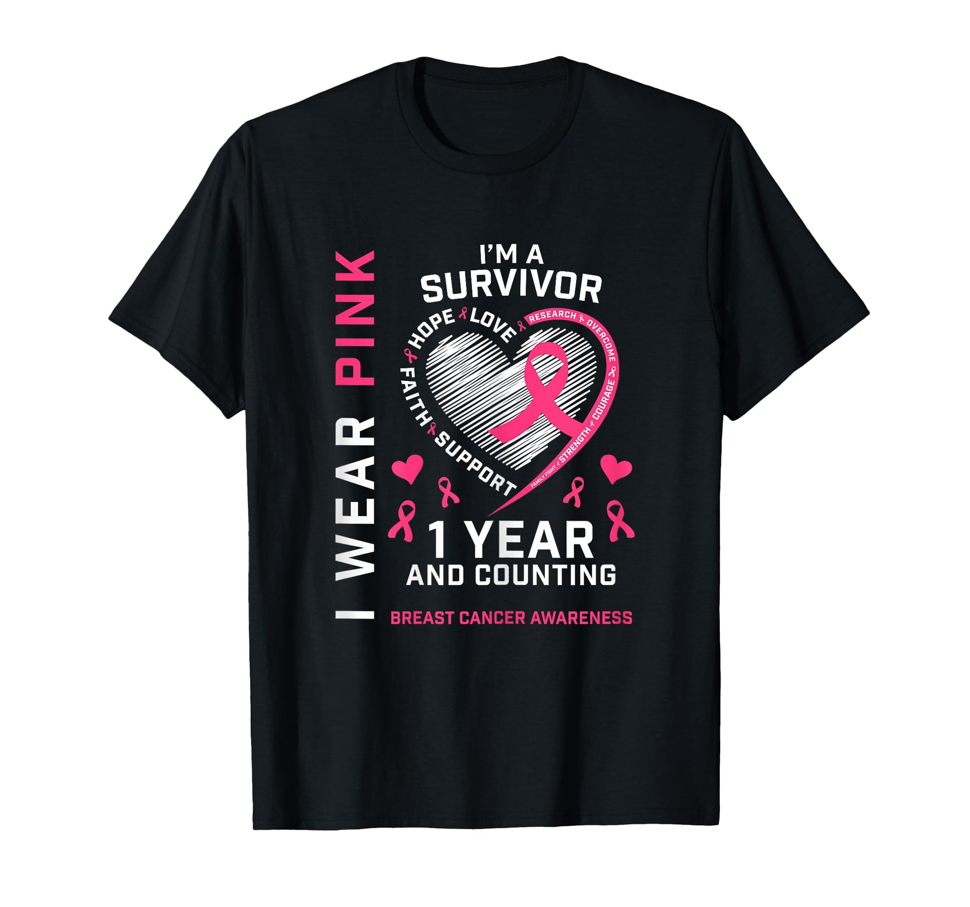 1 Year Cancer Free Mom Pink Awareness Breast Cancer Survivor T-Shirt