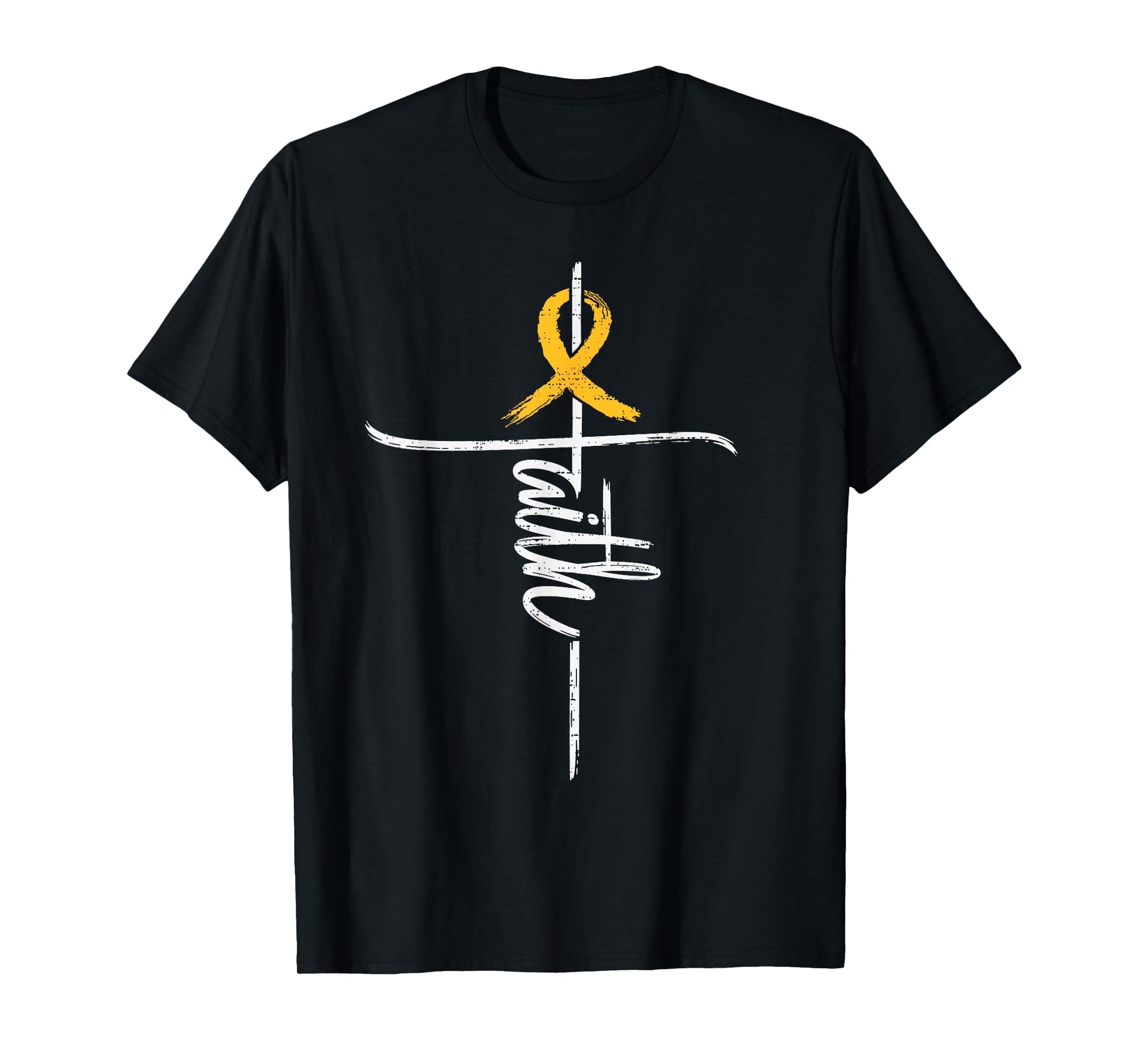 Faith Childhood Cancer Awareness Cross Christian Gold Ribbon T-Shirt