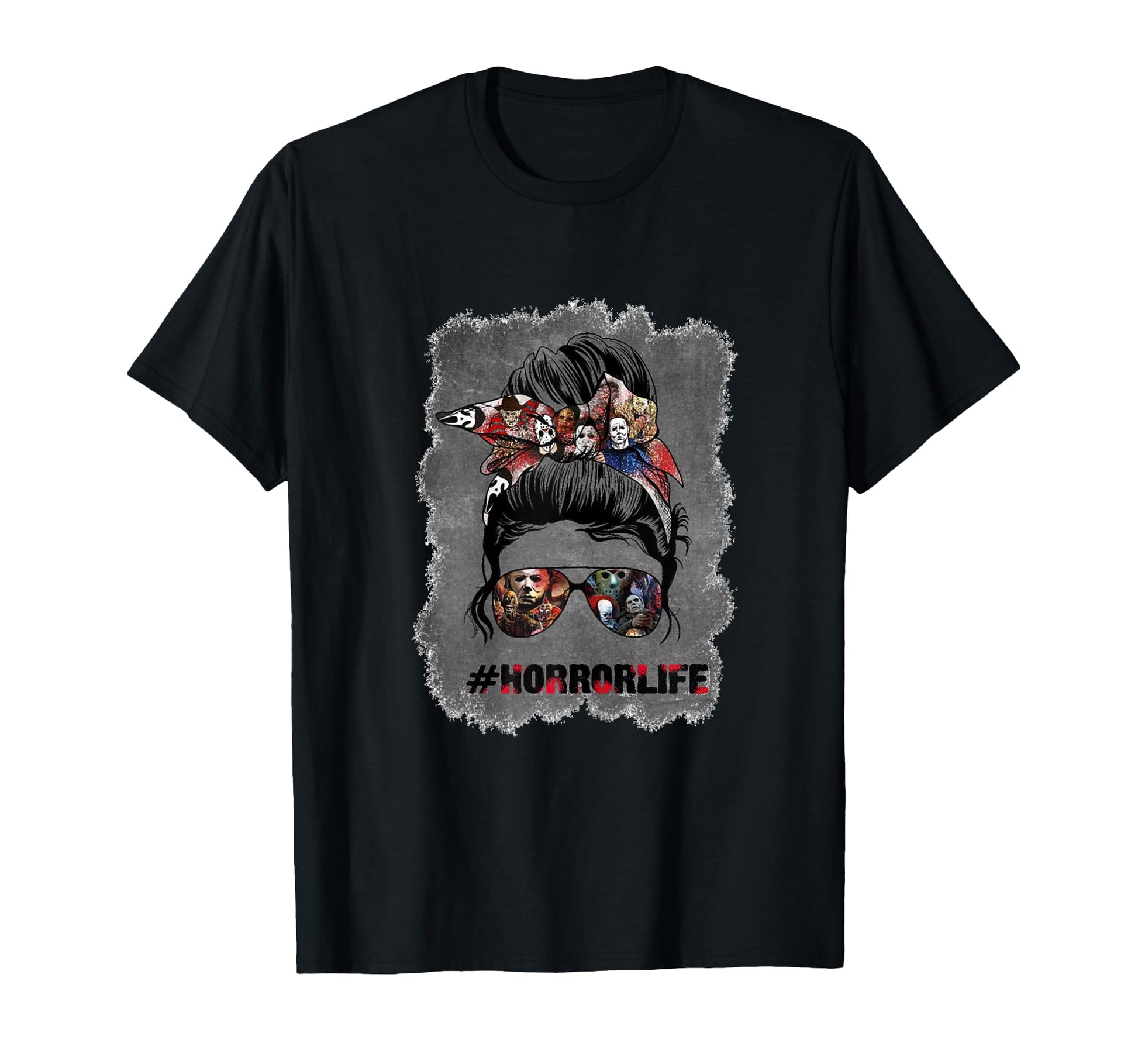 Messy Bun Horror Life Mom Halloween T-Shirt