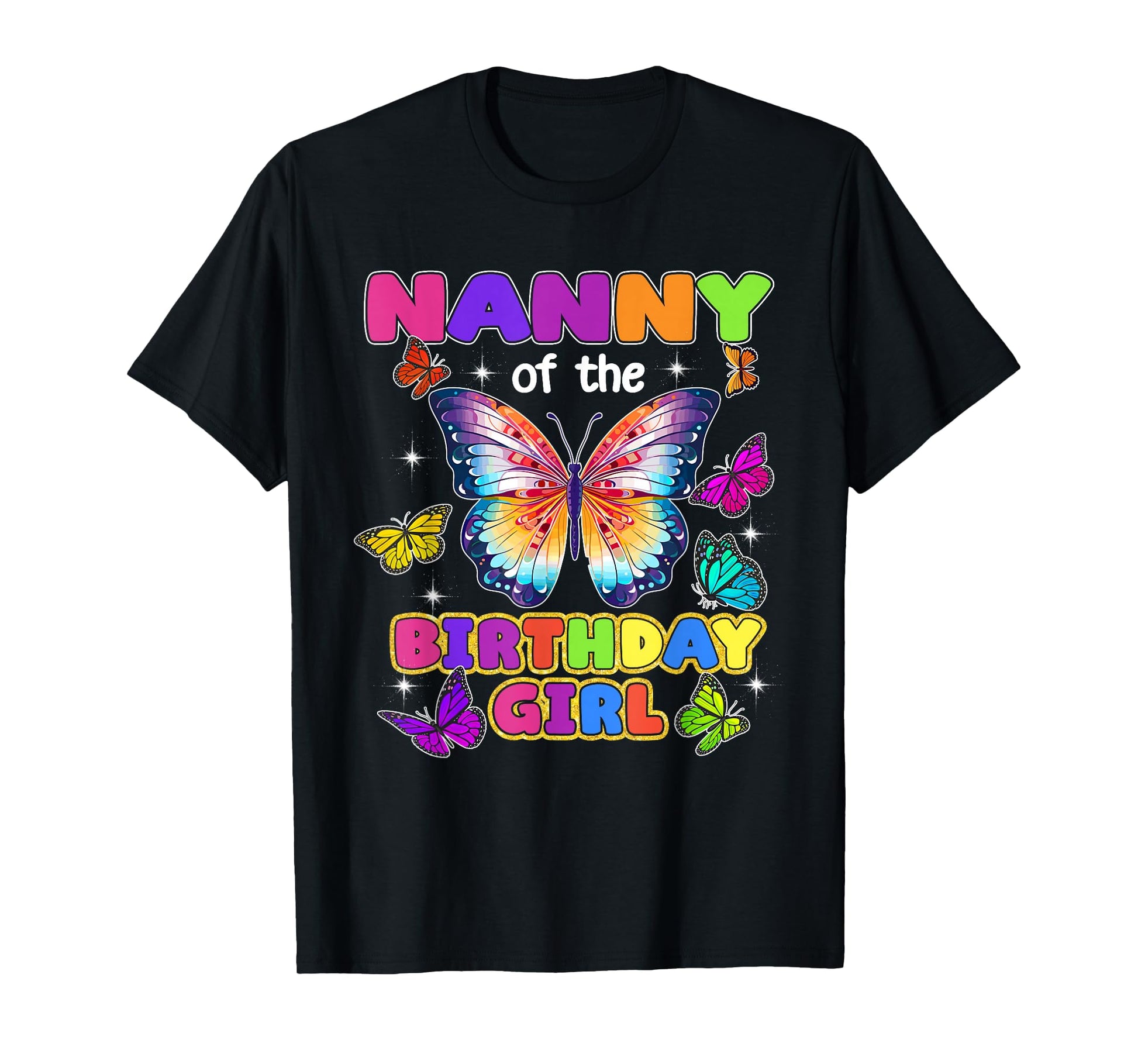 Nanny of The Birthday Girl Butterfly Family Matching T-Shirt