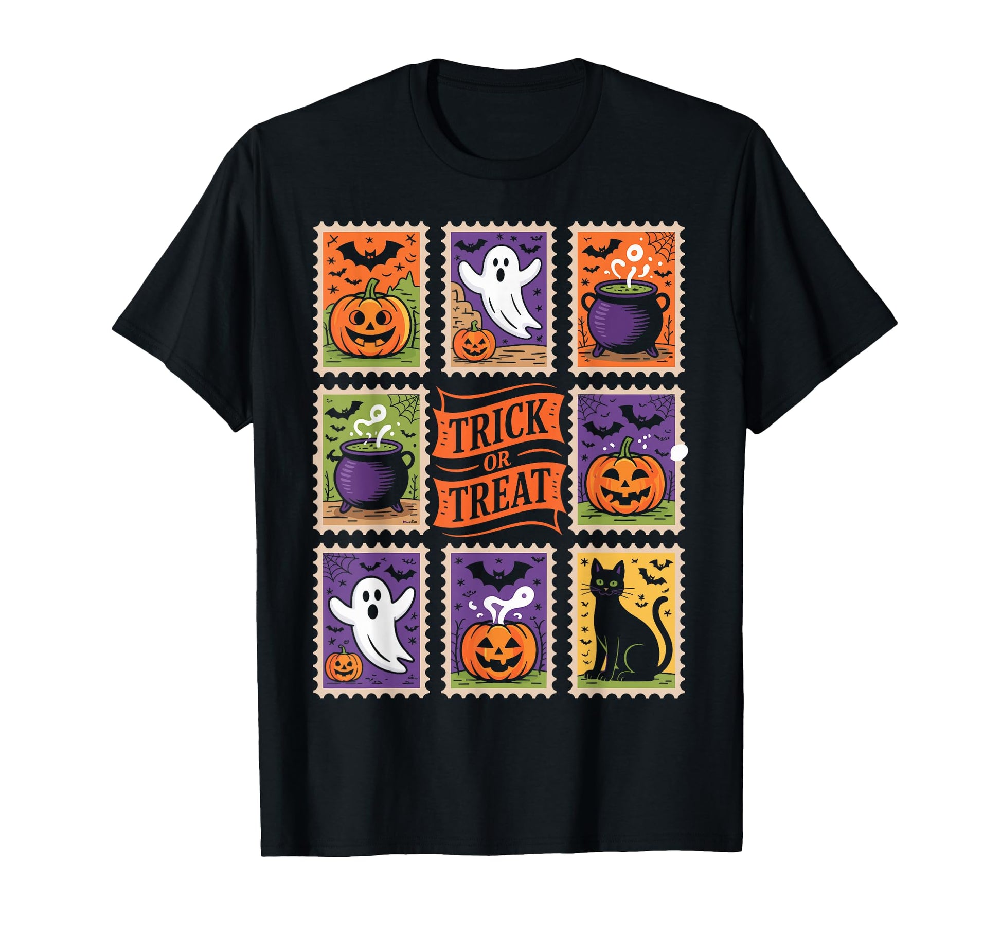 Retro Halloween Stamp Icons Funny Halloween Cat Ghost Stamp T-Shirt