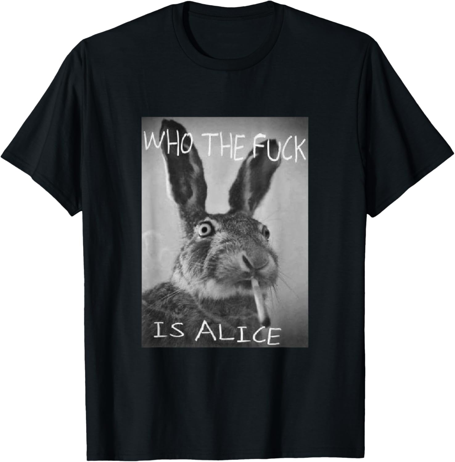 #snirt Funny Rabbit on T-Shirt Who is Alice? Cool Hoodie T-Shirt